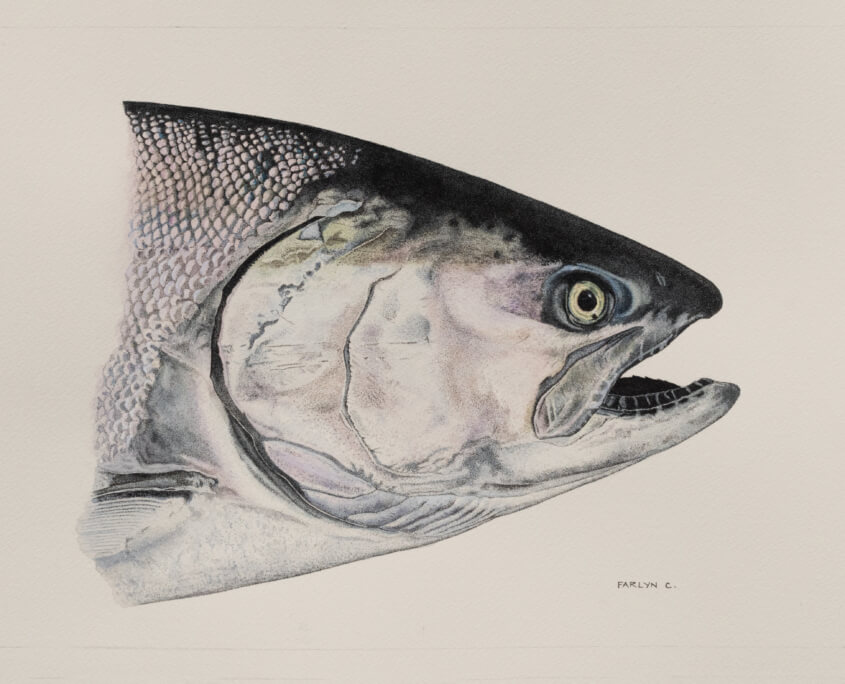 Blog, PressThe Pacific Salmon Foundation (PSF) is proud to announce Farlyn Campbell as the winner of the 2026–2027 Salmon Conservation Stamp Competition. Her piece, Smiley, was selected from 24 entries and will appear on next year’s stamp.