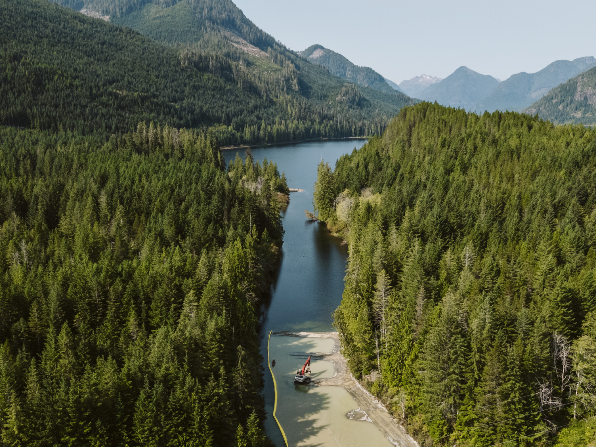 This summer, a dedicated group of partners created 200 metres of high-quality spawning habitat near Muchalat Lake near Gold River on Vancouver Island to benefit a Chinook salmon population that has been designated as threatened by the Committee on the Status of Endangered Wildlife in Canada (COSEWIC). This $1.3 million project – $560,000 of which was contributed by PSF – will increase Chinook spawning capacity at the site for years to come. The results came in quick: only a month after construction finished, hundreds of salmon were already spawning in the new habitat.