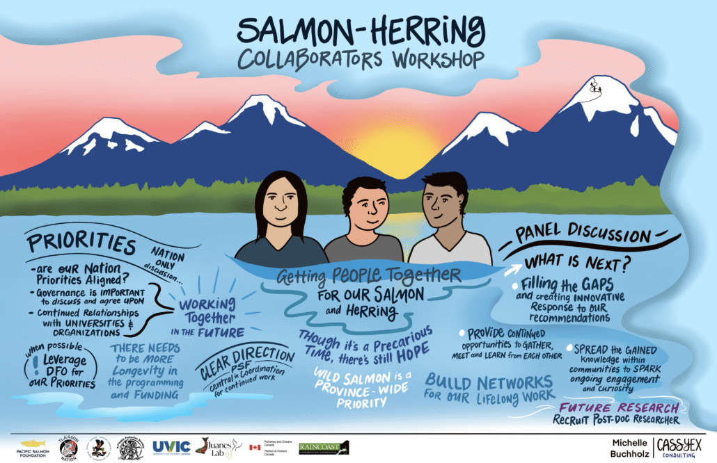 “Bringing all our project partners together to reflect on three years of salmon-herring research was incredibly rewarding. This workshop was intentionally designed with and for our First Nations partners, ensuring that we shared our findings in ways that resonated with everyone and sparked meaningful discussions to guide the work forward,” says Jess Qualley, PSF Salmon-Herring Interactions project manager.