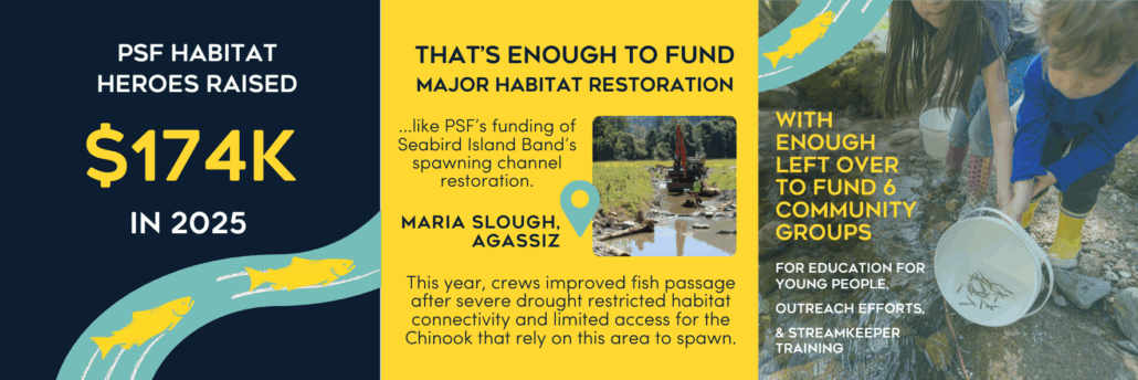 Pacific salmon are facing increasing pressures year on year from development and climate change, plunging roughly half of Pacific salmon populations into various states of decline. Salmon need people like you now more than ever, so thank you for your commitment to protecting and restoring this incredibly important keystone species.
