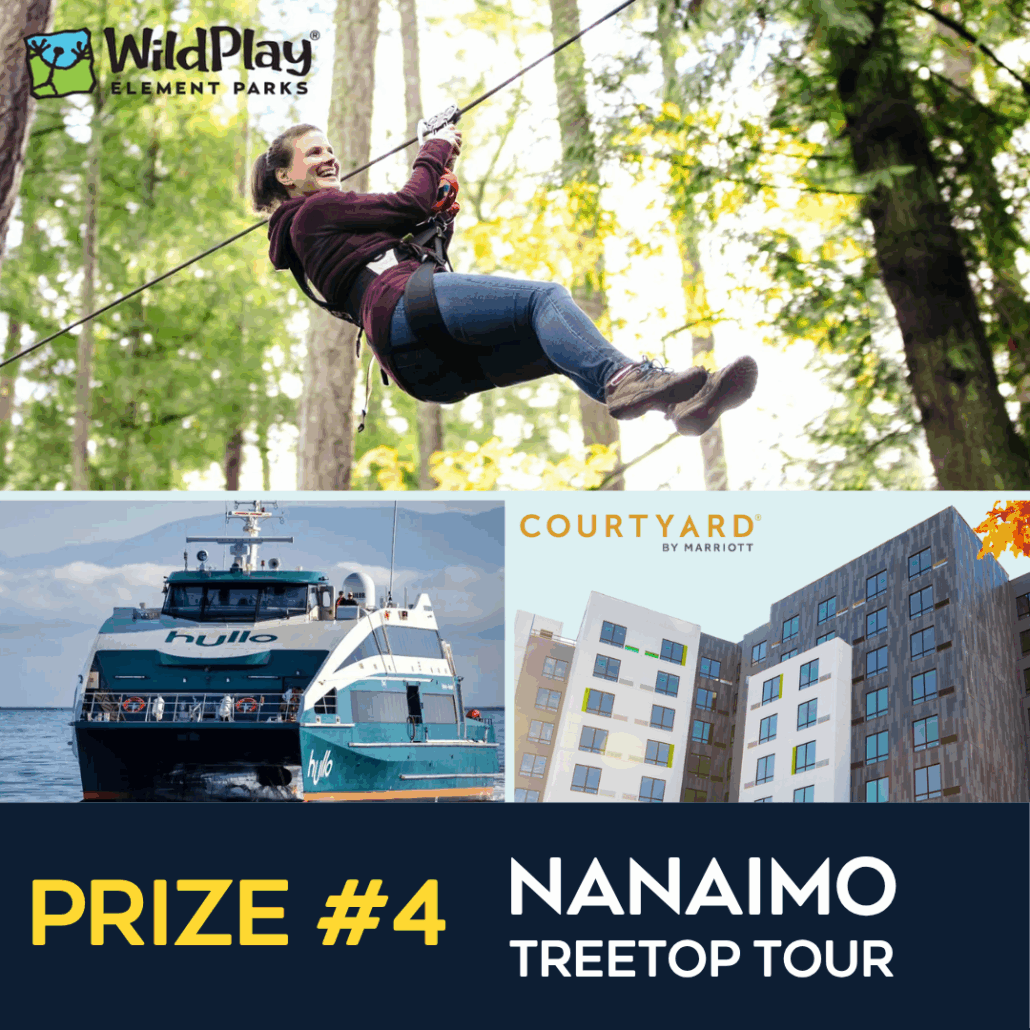 Experience adventure from sea to sky with a 1-night stay at the Courtyard Marriott Nanaimo, three Wildplay Nanaimo All-4-One passes, and round-trip sailings for two on Hullo Ferries. (Value: $860)